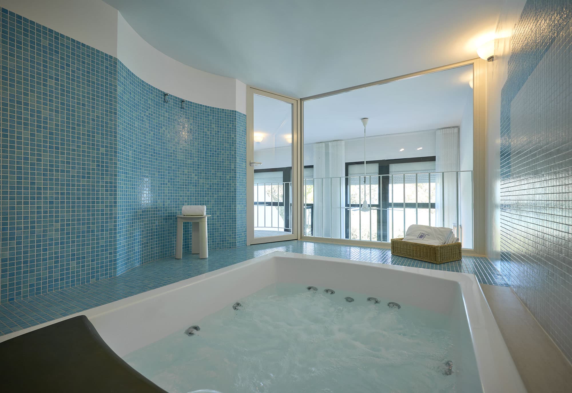 Die Jacuzzi-Suite ist das Symbol des magischen Urlaubs im Hotel Emilia. Diese äußerst helle und geräumige Suite zeichnet sich durch eine einzigartige Architektur auf zwei Ebenen aus, die den Wohnbereich geschickt vom Schlafbereich trennt.
