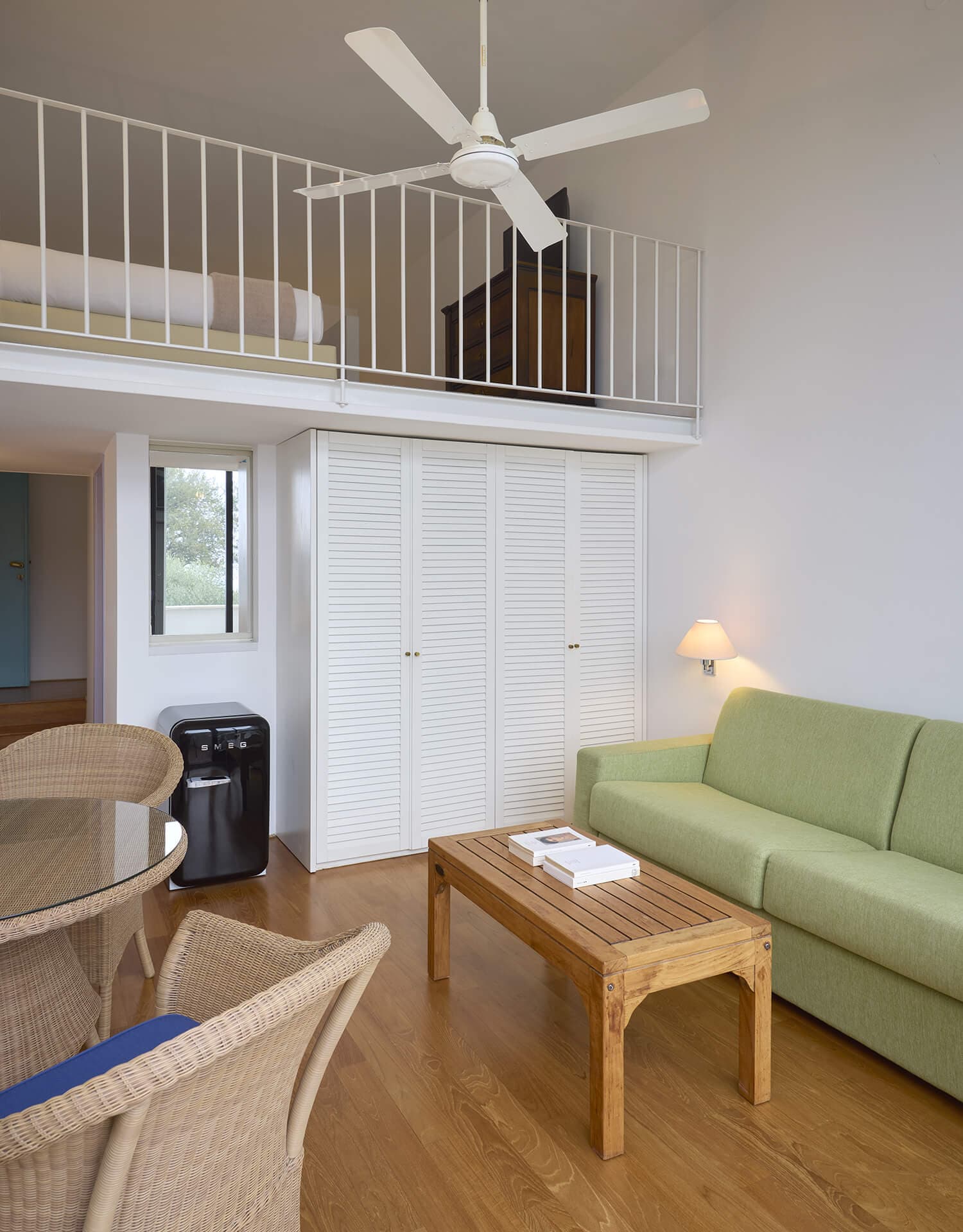 Die Suite ist die ideale Wahl für alle, die Urlaub in einer sehr großen und hellen Umgebung verbringen möchten, die mit ihren 70 Quadratmetern Fläche maximalen Komfort und Platz für bis zu 4 Personen garantiert. Die Exklusivität der Unterkünfte spiegelt sich in der Struktur auf zwei Ebenen wider, geprägt von raffinierten Oberflächen, die die Wärme des Parketts mit der Weichheit des Teppichs abwechseln.
