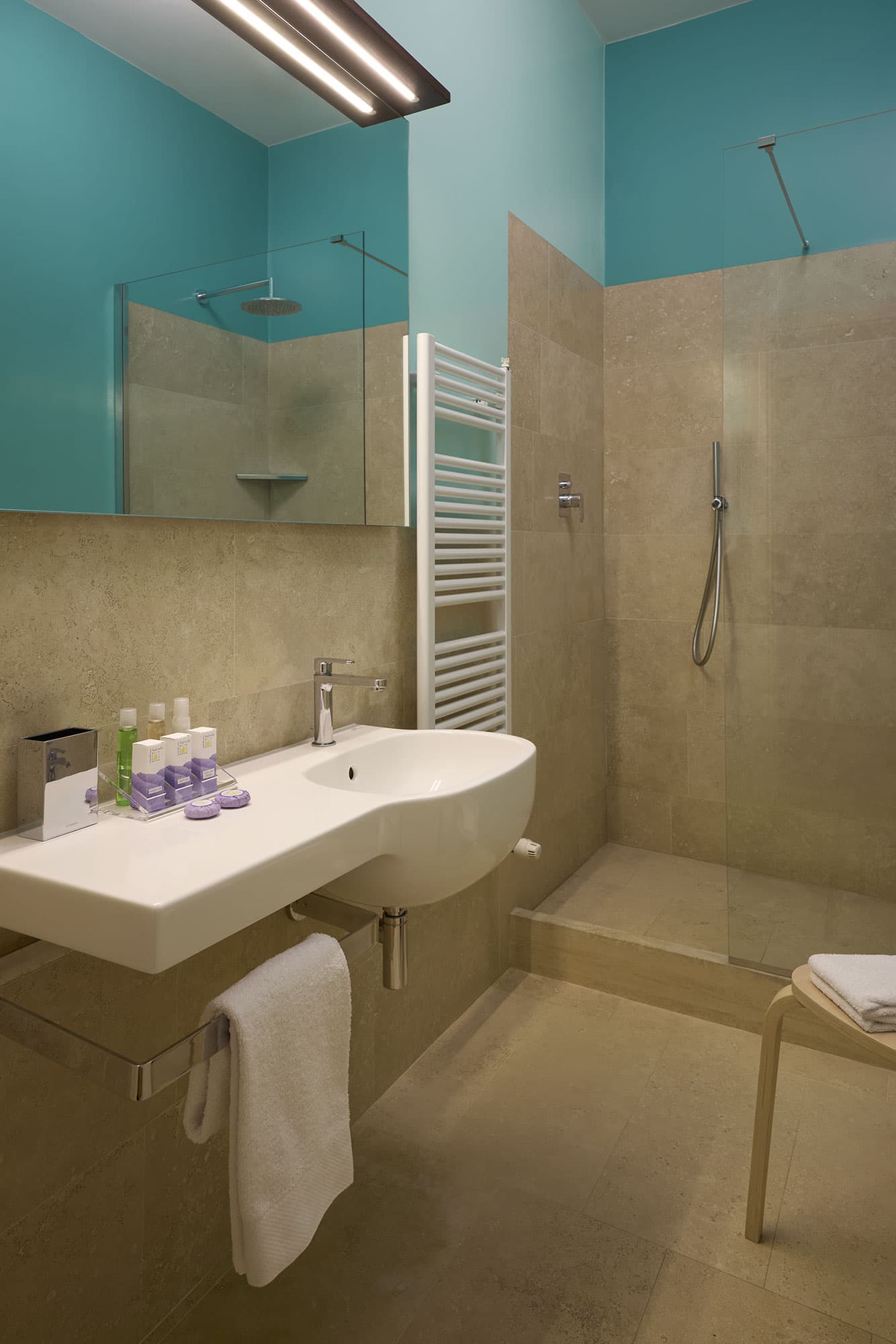 Le Junior Suite si distinguono per i pavimenti in parquet e per l’arredo in rovere, legno simbolo della cultura marchigiana, capace di trasmettere calore e autenticità. Ogni dettaglio è studiato per garantire un soggiorno piacevole e senza pensieri.